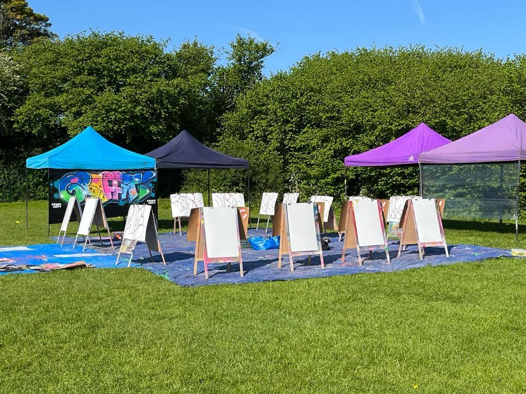 You just need to have an outdoor area that we can set up enough easel boards and for some pop up gazebo's.