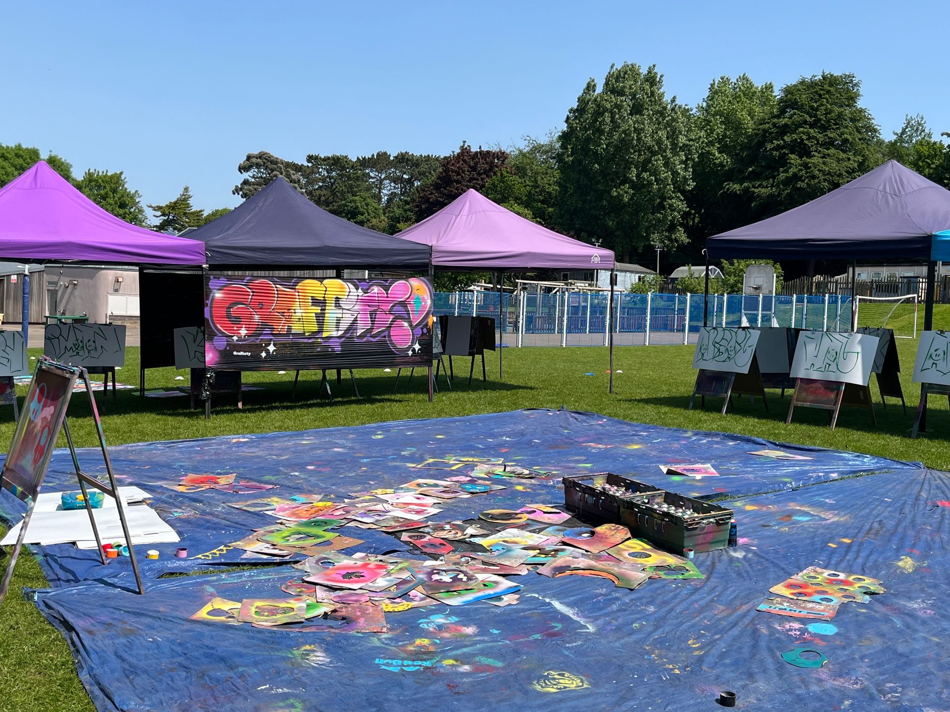 In order to have a graffiti workshop, you need to have a suitable outdoor space where we can set up enough easel boards and some 3m x 3m pop-up gazebos.