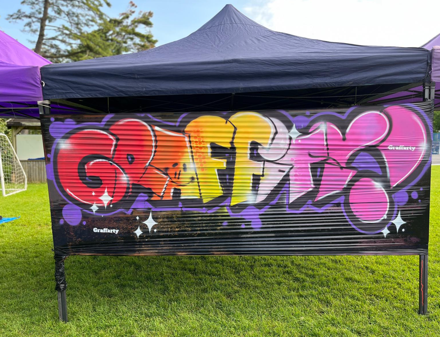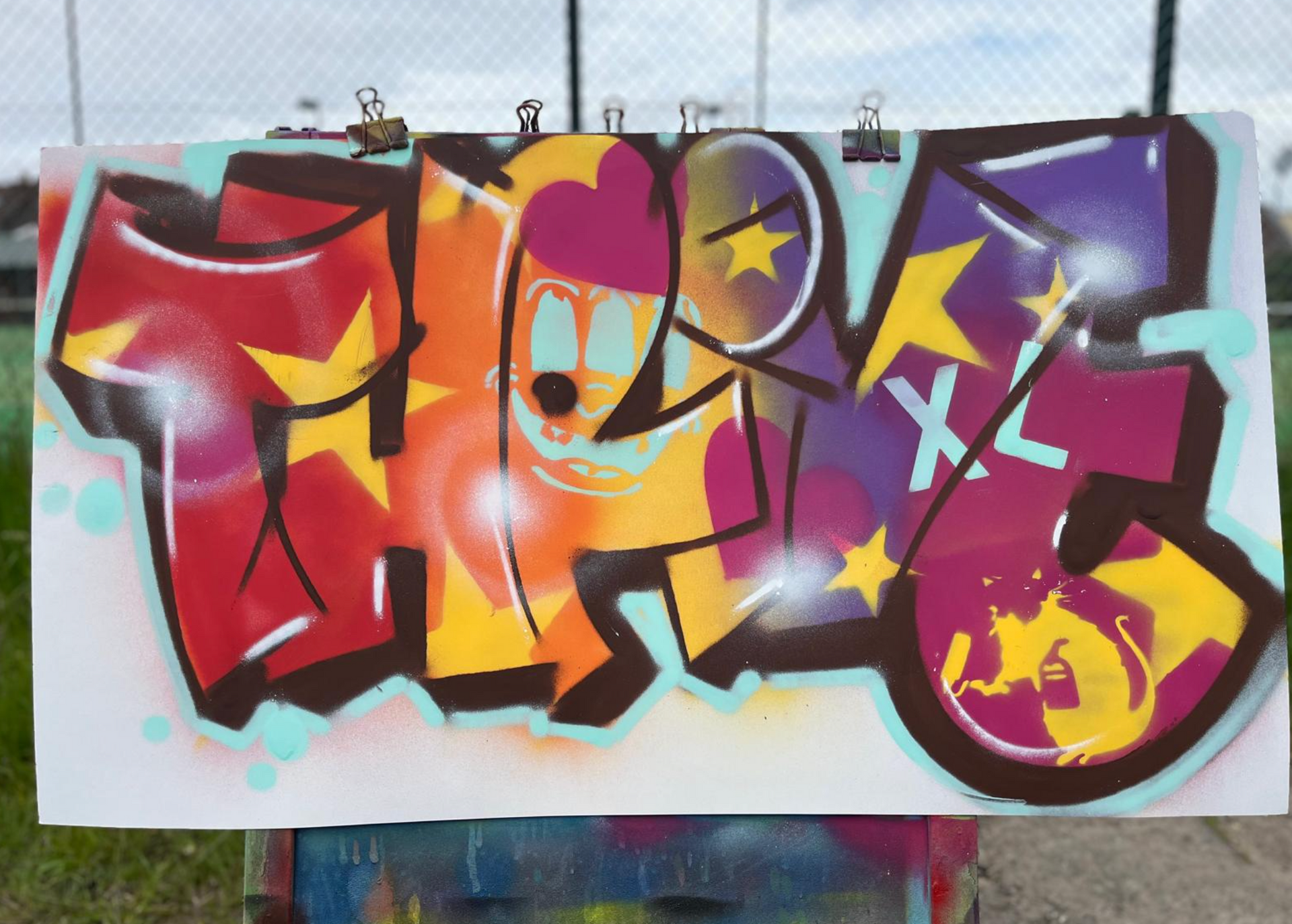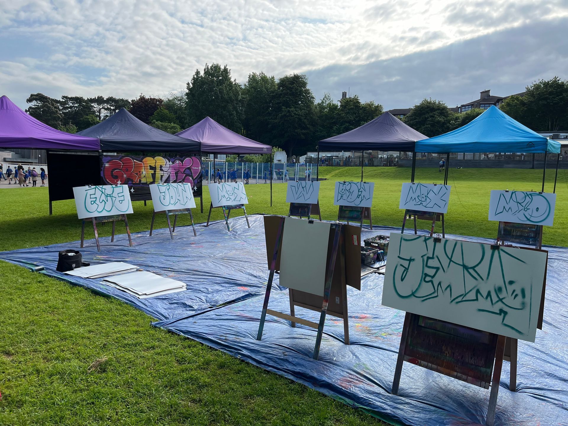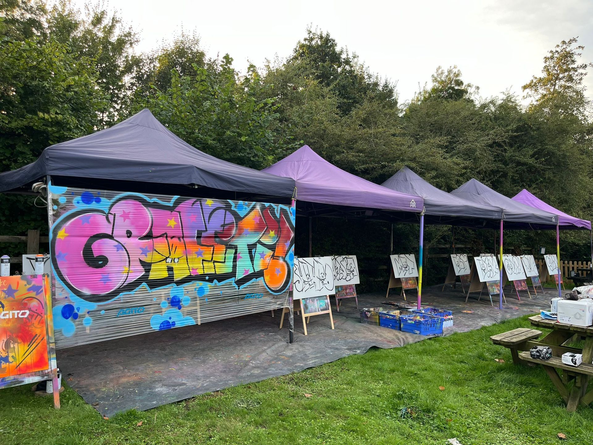 The graffiti workshop session also known as Sip and Spray, takes place in an outside area of The Folly in Emersons Green. Gazebos will be set up so that if it rains or shines everyone can still paint.