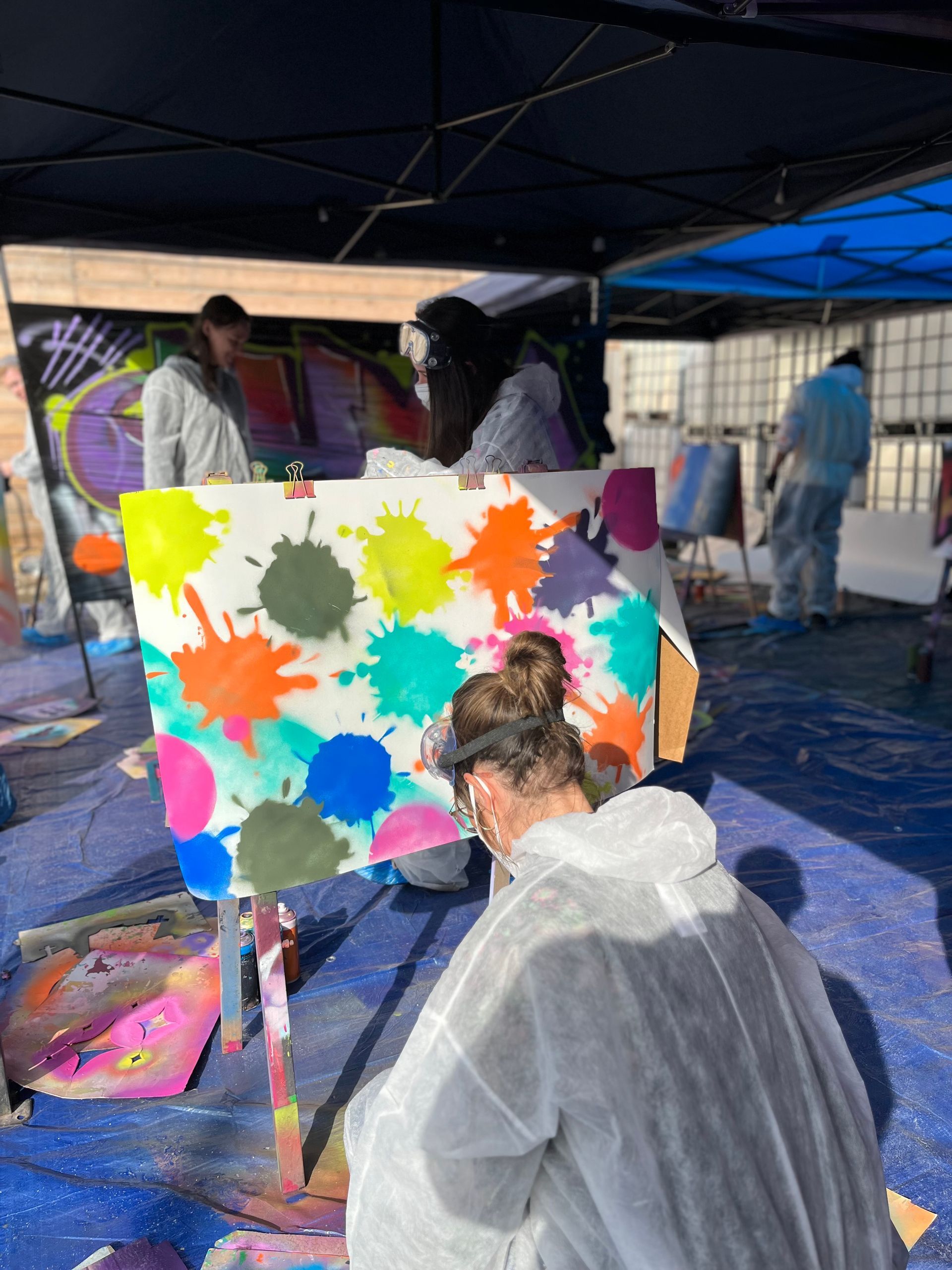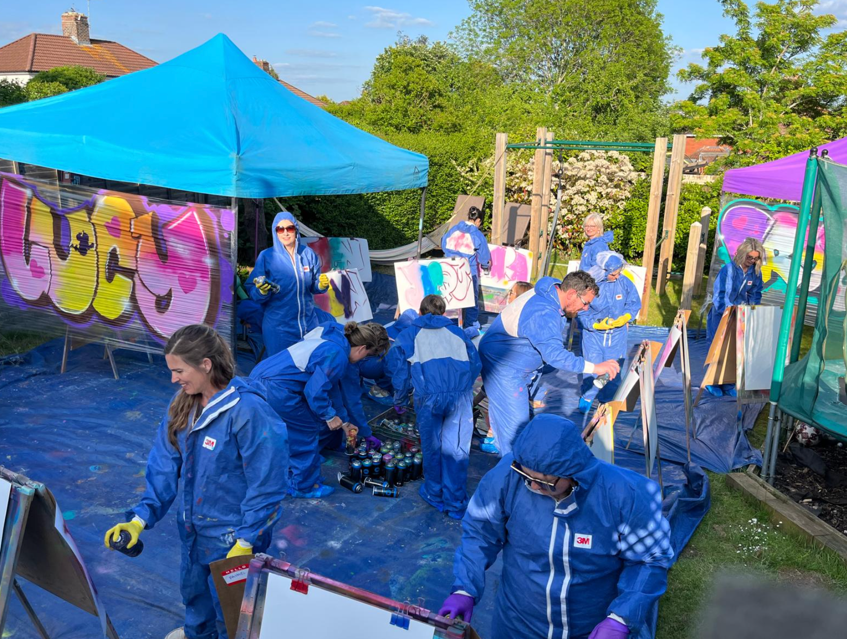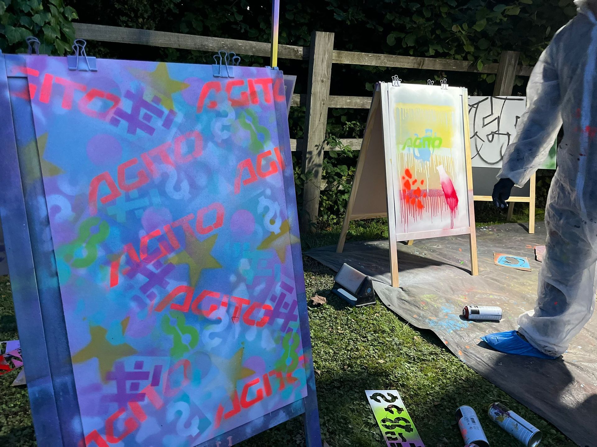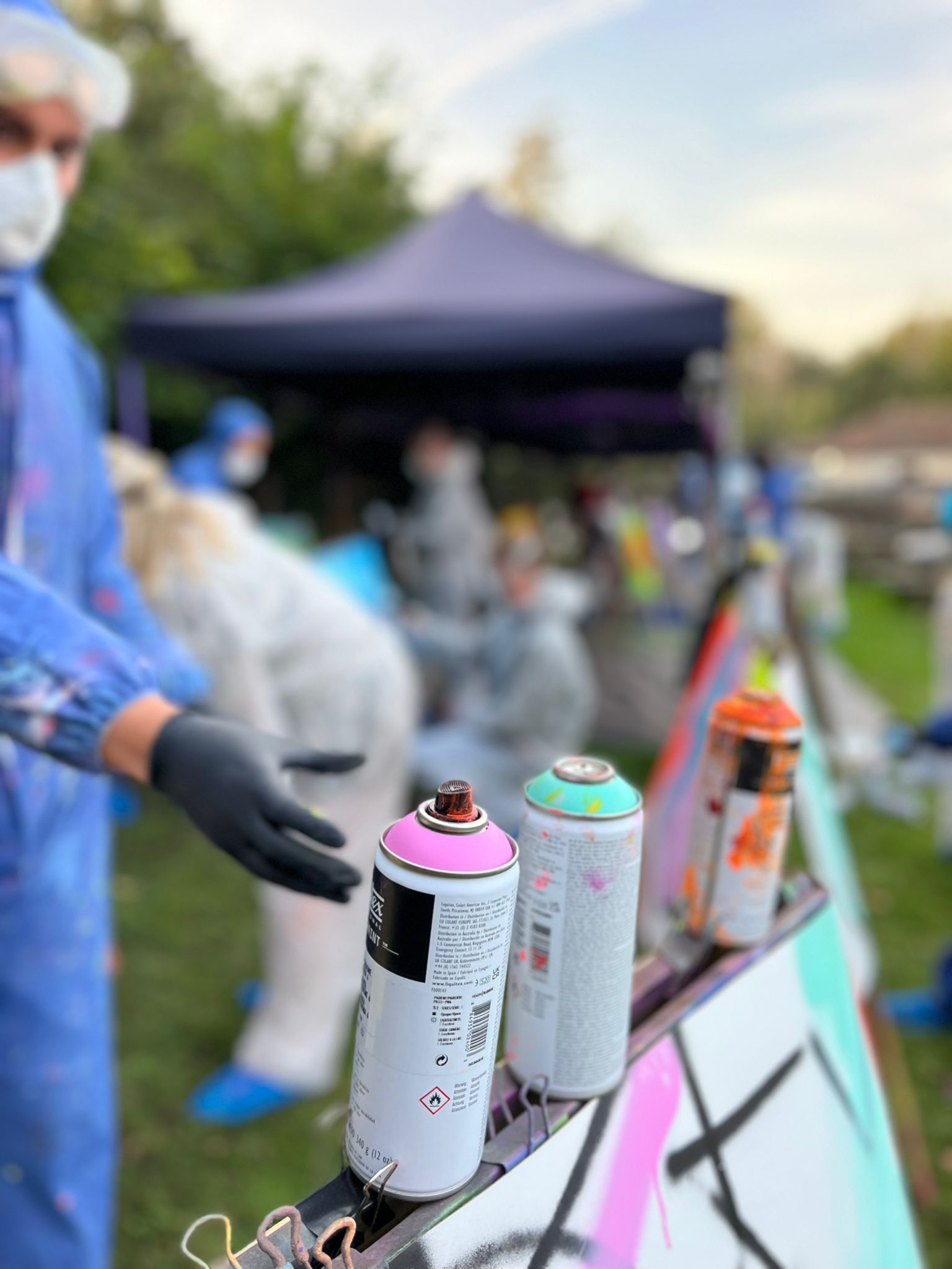 The graffiti workshop session also known as Sip and Spray, takes place in an outside area of The Folly in Emersons Green. Gazebos will be set up so that if it rains or shines everyone can still paint.