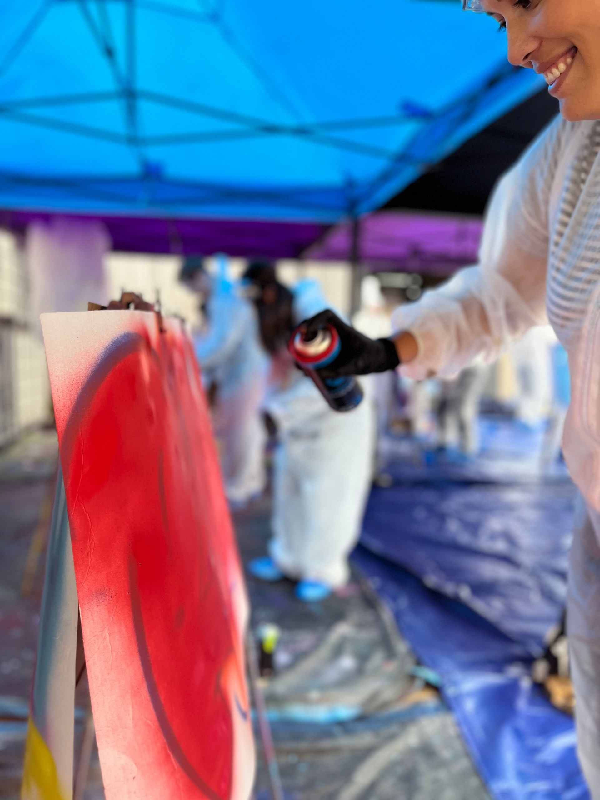 After a brief demonstration of how to use the water based spray paint and getting changed into full protective clothing which will be provided.